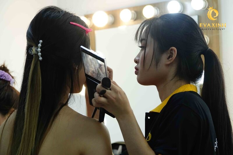Môi trường học tập chuyên nghiệp cho phép bạn thực hành thường xuyên và tiếp xúc với đa dạng đối tượng khách hàng. Bạn sẽ có cơ hội làm việc với nhiều kiểu khuôn mặt, tone da và phong cách khác nhau. Điều này không chỉ giúp bạn tích lũy kinh nghiệm quý báu mà còn phát triển khả năng thích ứng và sự sáng tạo trong nghề makeup.
